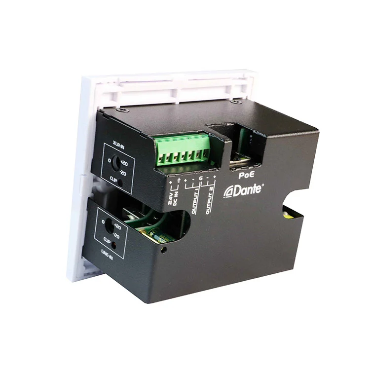 2Ch Dante Arayüzü 2 Mikrofon/Satır Girişleri X 2 Çıkışlar Arayüz Paneli, konferans salonları, canlı ses kurulumları, yayın stüdyoları ve güvenilir Dante-to-analog ve analog-durda dönüşümün kompakt, rafsız form faktöründe gerekli olduğu profesyonel ses uygulamaları için mükemmeldir. Duvara monte edilmiş tasarımı, yüksek kaliteli ses performansını korurken çeşitli ortamlara temiz ve verimli entegrasyon sağlar.